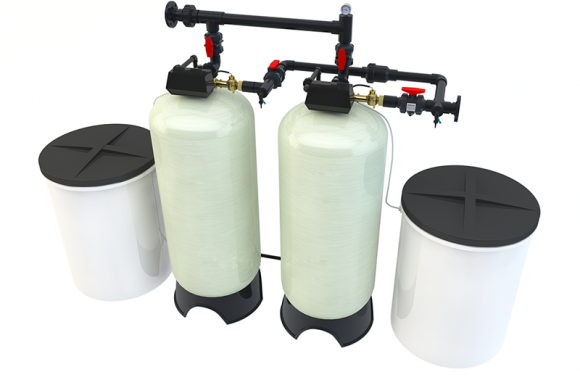 雙閥雙罐:即兩個(gè)樹脂罐兩個(gè)多路閥、兩個(gè)鹽箱,交替再生同時(shí)供水,實(shí)現(xiàn)24小時(shí)不間斷連續(xù)供水。