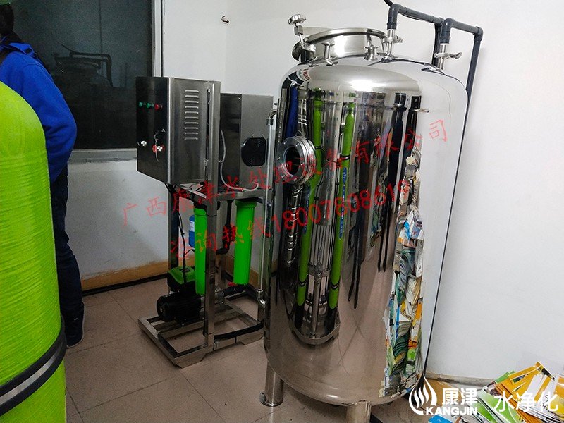 工藝流程:原水箱-原水泵-石英砂過濾器-活性炭過濾器-精密過濾器-臭氧殺菌-高壓泵-反滲透膜組-無菌水箱-變頻回水系統