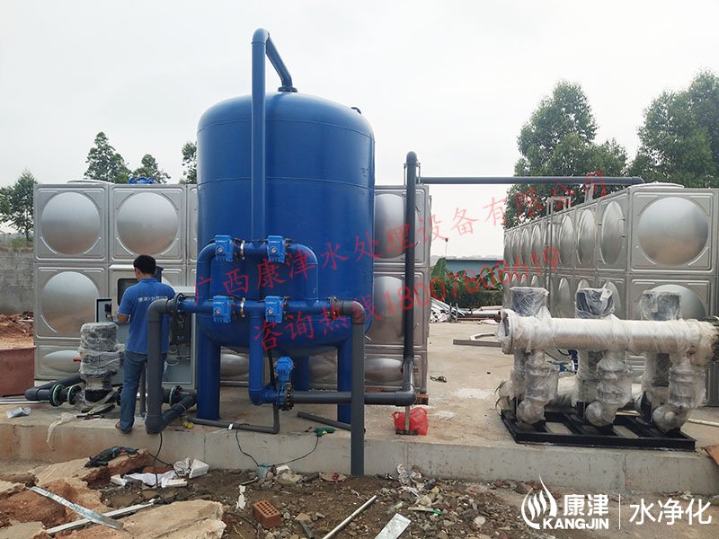 工藝流程:井水-原水箱-石英砂過濾器-凈水箱
