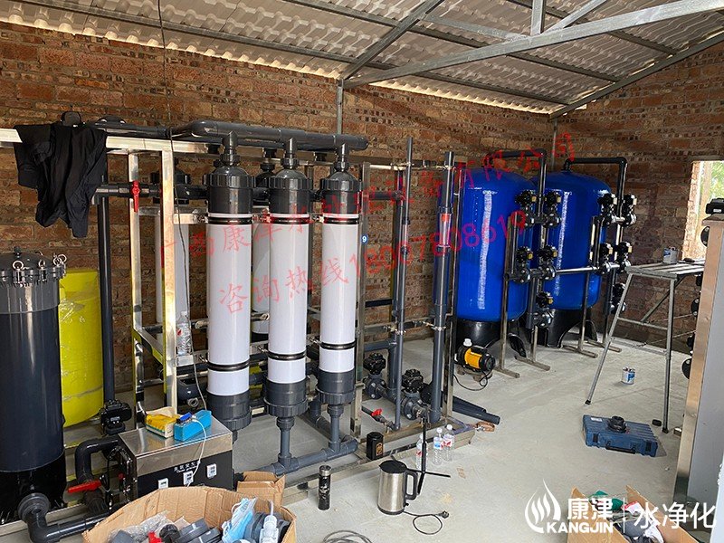 10T/H超濾水處理設備,業主是廣西防城港海水養殖公司,產出的凈水用于漁業養殖使用。超濾水處理設備過濾精度為0.005到0.01微米范圍內,可有效去除水中的微粒、膠體、細菌、熱源及高分子有機物質等。設備廣泛應用于礦泉水制造、食品和醫藥生產、城市中水會用等領域。設備工藝流程。原水來自于大壩,進入保溫水箱后經高壓泵進入預處理系統,根據業主水質情況,預處理部分我們推薦的是砂濾和錳砂濾,主要是為了軟化水質。預處理產水接著進入精密過濾器,主要是PP棉過濾工作,PP棉更換成本低,一般3個月左右檢查一次,看情況更換。超濾是一種以篩分為分離原理,以壓力為推動力的膜分離過程,所以超濾前需要增加壓力泵。產出的凈水到水箱后由業主的抽水泵供應到用水點。在這里說下,我們看到成套設備有一個黃色的桶,它是負責給超濾組件加藥清洗用的,及時清理超濾膜內的雜質,保證膜元件的使用壽命。
