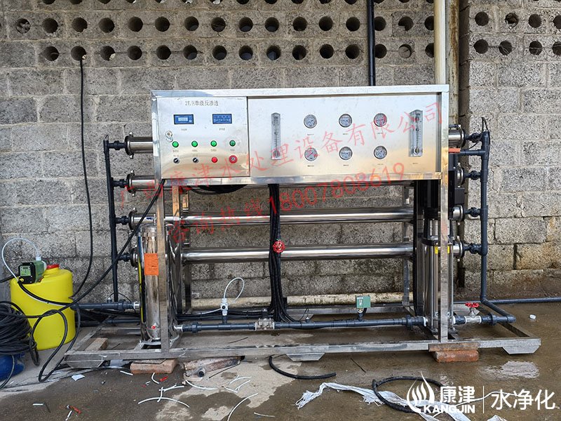 項目名稱:貴港造紙廠鍋爐2噸反滲透凈水設備 設備名稱:2噸反滲透純凈水設備 工藝流程:井水-原水箱-石英砂過濾器-活性炭過濾器-精密過濾器-增壓泵-反滲透設備-凈水箱...