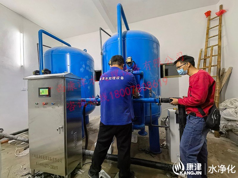 項目名稱:貴港旺嶺村地下水凈化工程 設備名稱:30噸壓力式凈水設備 工藝流程:河水-石英砂過濾器(二級過濾)-二氧化氯消毒...