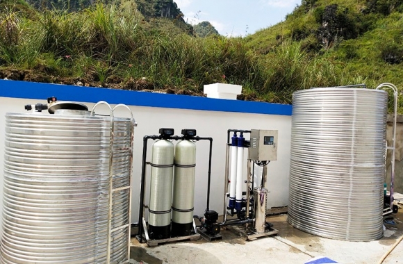 項目名稱:河池光伏項目部生活用水設備 設備名稱:2噸超濾凈水設備 工藝流程:山泉水-原水箱-原水泵-石英砂過濾器-活性炭過濾器-精密過濾器-超濾設備-紫外線殺菌-變頻水泵-凈水箱...