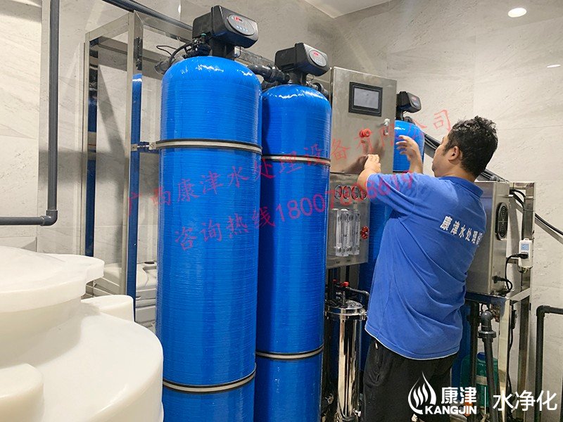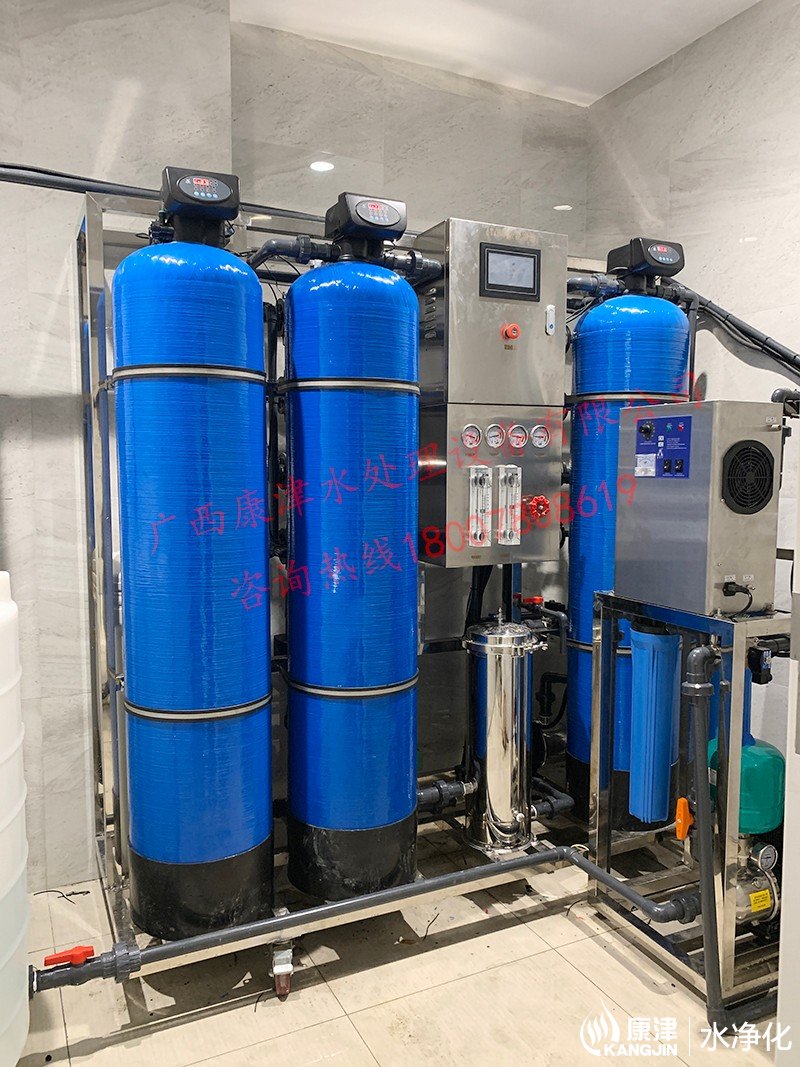 工藝流程:原水箱-原水泵-石英砂過濾器-活性炭過濾器-樹脂過濾器-精密過濾器-反滲透設(shè)備-軟水鹽-凈水箱-變頻供水回水殺菌系統(tǒng)-用水點(diǎn)