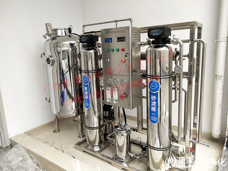 工藝流程:石英砂過濾器-活性炭過濾器-精密過濾器-加藥-高壓泵-反滲透膜組-無菌水箱-變頻恒壓供水系統