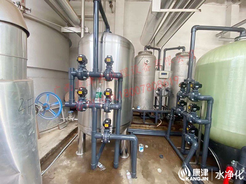 項目名稱:平南某纖維板工廠鍋爐25噸凈化軟化設備 設備名稱:25噸凈化軟化設備 工藝流程:地下水+自來水-水箱-石英砂過濾器-軟化水設備1-軟化水設備2-精密過濾器-各用水點...