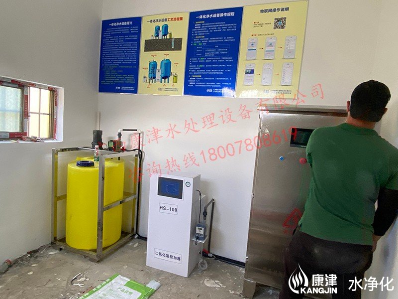 工藝流程:河水-絮凝加藥-沉淀過濾器-石英砂過濾器-二氧化氯消毒