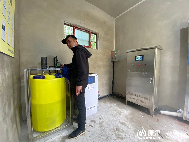 項(xiàng)目名稱:農(nóng)村飲水安全鞏固提升工程 設(shè)備名稱:貴港市三六村10噸壓力式一體化凈水設(shè)備 工藝流程:河水-絮凝加藥-沉淀過濾器-石英砂過濾器-二氧化氯消毒...