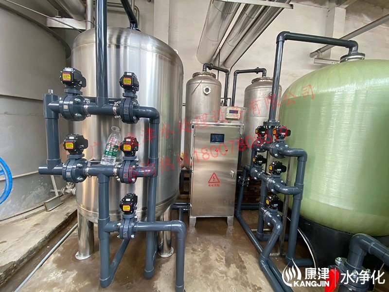 工藝流程:地下水+自來水-水箱-石英砂過濾器-軟化水設備1-軟化水設備2-精密過濾器-各用水點