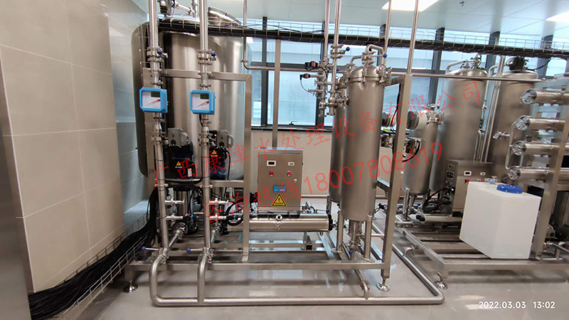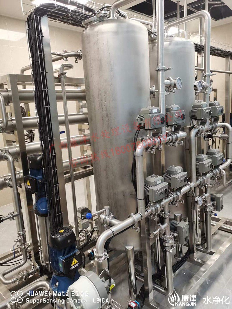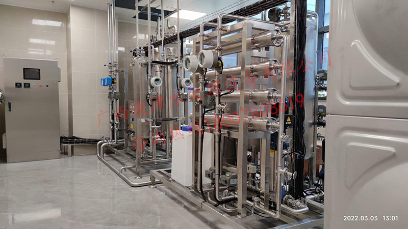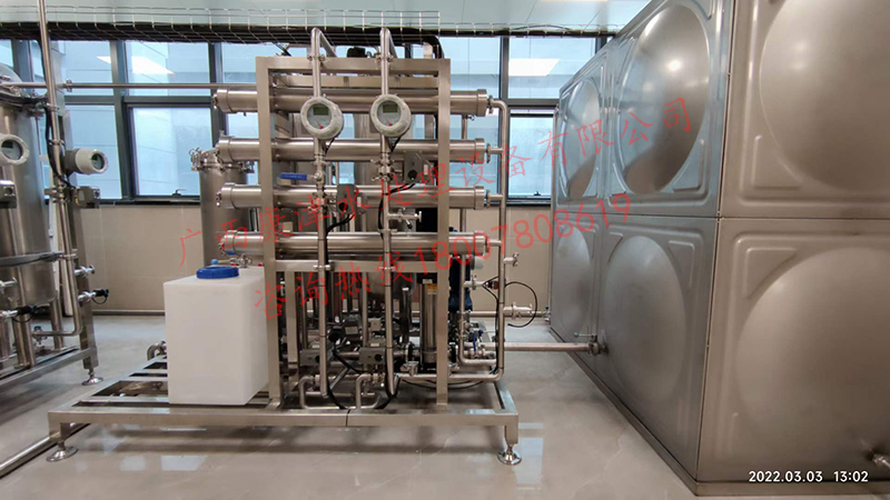 工藝流程:原水箱-原水泵-石英砂過濾器-活性炭過濾器-精密過濾器-紫外線殺菌器-增壓泵-反滲透膜組-加藥系統(tǒng)-無菌水箱-紫外線消毒殺菌器-除菌過濾器-變頻恒壓供水系統(tǒng)-用水點