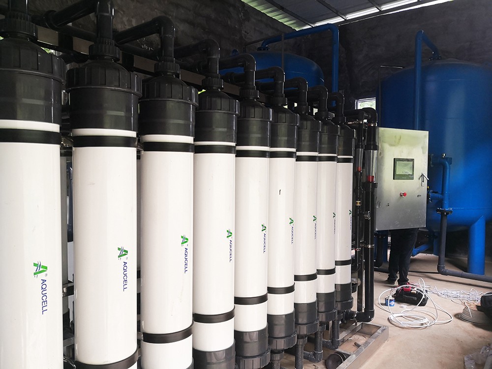 超濾是利用超濾膜的微孔篩分機理,在壓力驅動下,將直徑為0.002-0.1μm之間的顆粒和雜質截留,去除懸浮物、膠體、蛋白質、微生物和大分子有機物。