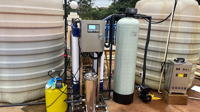 項目名稱:欽州市某項目部4噸超濾生活用水設備 設備名稱:4噸超濾凈水設備 工藝流程:地下水-原水箱(自備)-臭氧發生器-原水泵-錳砂過濾器-精密過濾器-超濾設備-凈水箱(自備)-二氧化氯加藥-供水泵...