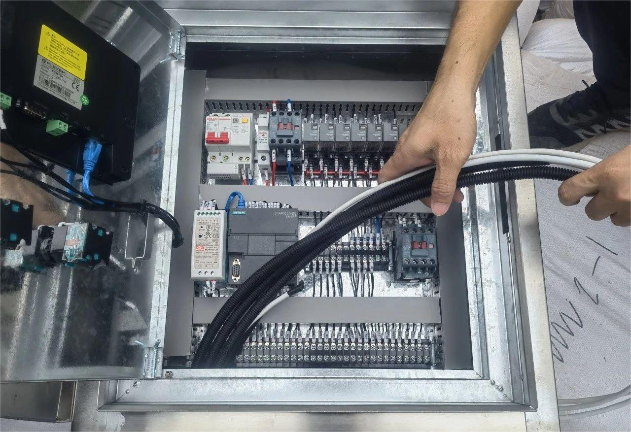 將閥門安裝后就要開始進行布線工作,每一次的布線都是要根據(jù)實地情況來安排,將布好的線連接電箱并安裝,最后對投濾器的水泵接口進行安裝?;旧线@套30噸/小時的壓力式一體化凈水設備的安裝就大功告成,業(yè)主對于本次的設備安裝還是相當滿意的。