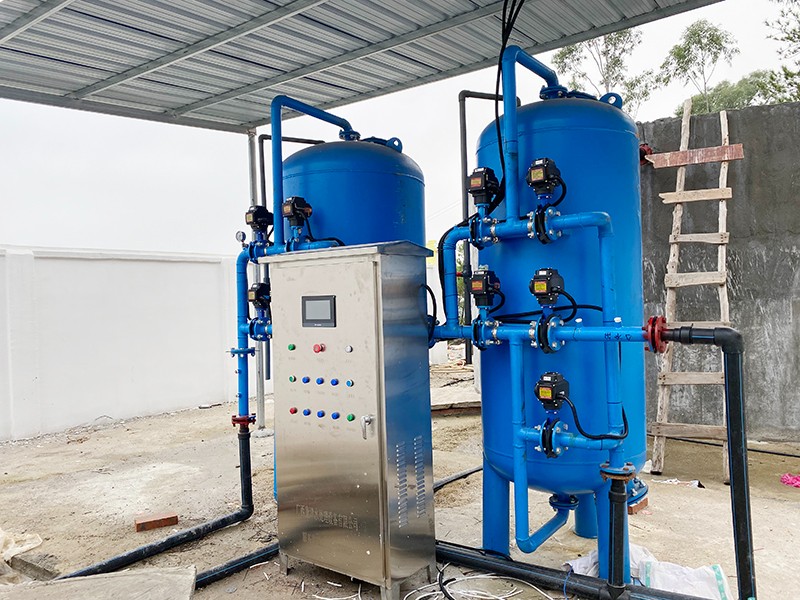 本方案主要針對(duì)原水為河水、地下水、自來(lái)水等地區(qū),水源通常比較渾濁,水面漂浮臟東西、樹(shù)葉、水藻等,尤其在暴雨季節(jié),水中泥沙量增加,雜質(zhì)多等情況。因此利用填料來(lái)降低水中 濁度,截留除去水中懸浮物、有機(jī)物膠質(zhì)顆粒,是給水凈化的重要水處理設(shè)備。康津水處理為根據(jù)實(shí)際用途情況制定以下解決方案。用水處理量每小時(shí)約5-8噸。
