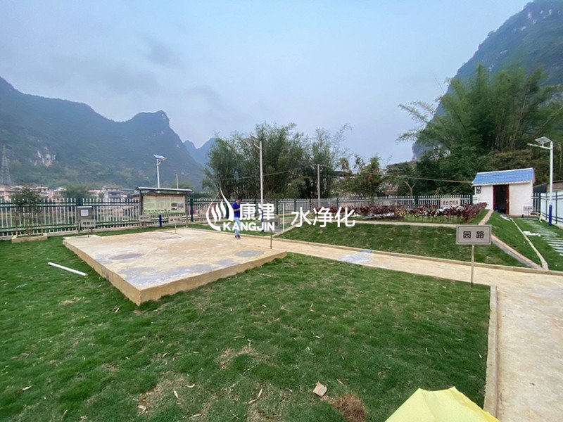 工藝說明:村屯生活污水經過收集管網后先經過格柵,攔截大顆粒漂浮物、懸浮物,然后自流到調節池,再經提升泵進入組合式固定床設備,在組合式固定床設備中經過缺氧區、好氧區等多級反應區處理,接著進入沉淀池進行污泥沉淀,一部分污泥回流前部缺氧區,剩余污泥排至污泥池。沉淀池出水流入人工濕地,在此污水中的有機污染物通過人工濕地的生物氧化、吸附、降解。人工濕地出水經出水井外排至附近池塘下游。最后達標排放。調節池、污泥池前格為污泥硝化區,污泥硝化區內的污泥通過厭氧消化后定期采用吸糞車抽吸外運堆肥處理。